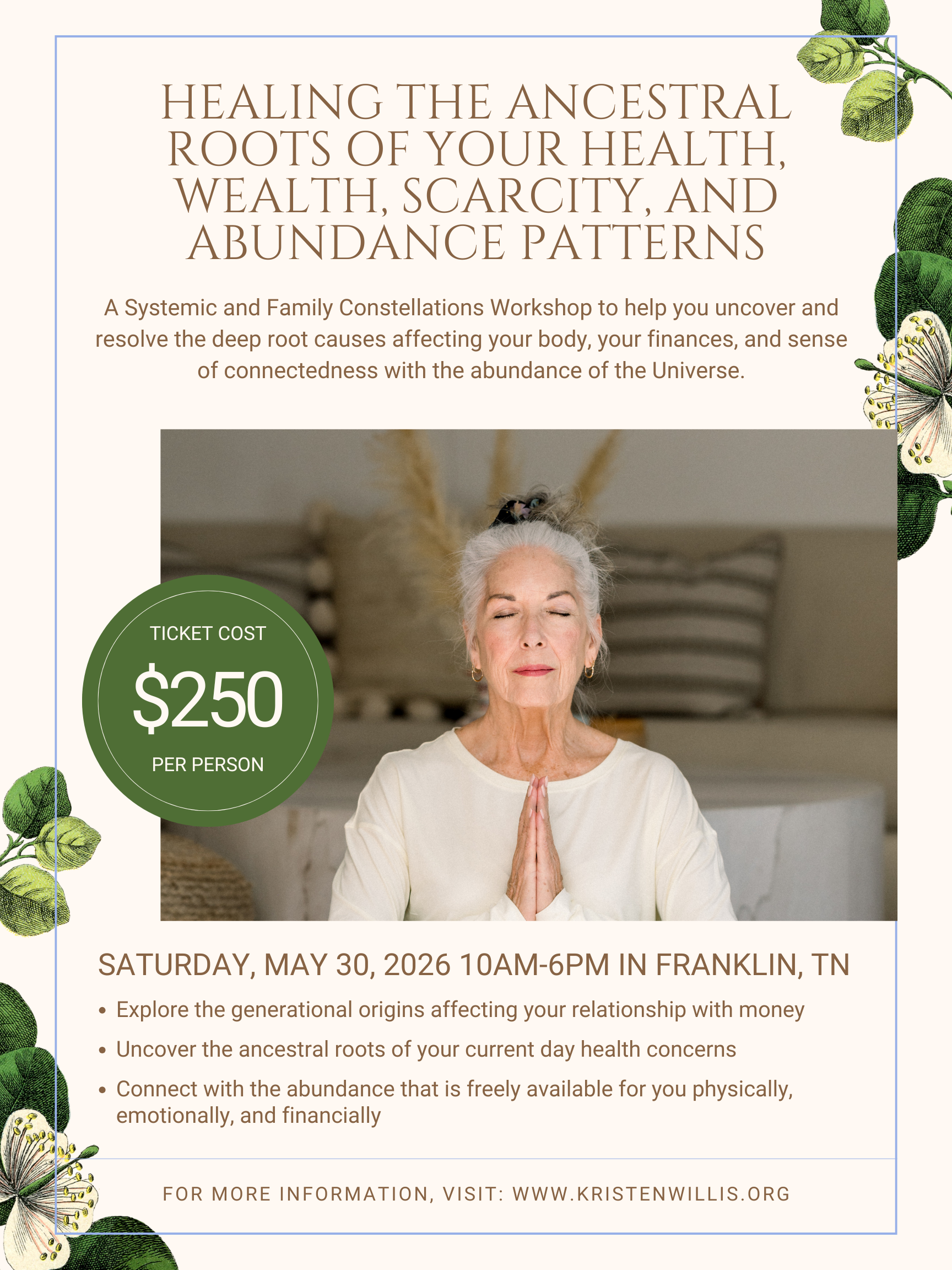 So many people are chasing root causes of their health issues, belief patterns, financial concerns and relationship snags without ever addressing the underlying influencer of our parents, grandparents, and ancestors’ experiences. As a result, we unconsciously replay the same dynamics and symptoms over and over again until a cycle breaker comes to bring love and conscious awareness to the system. If you identify as a cycle breaker, this workshop is for you!